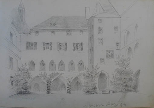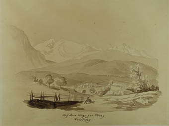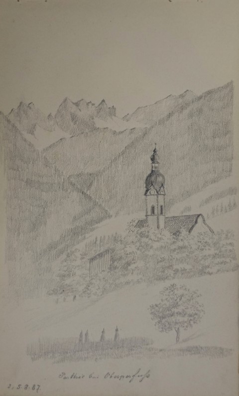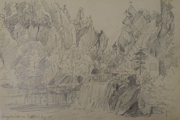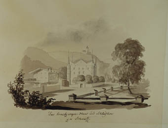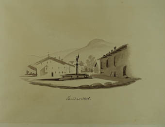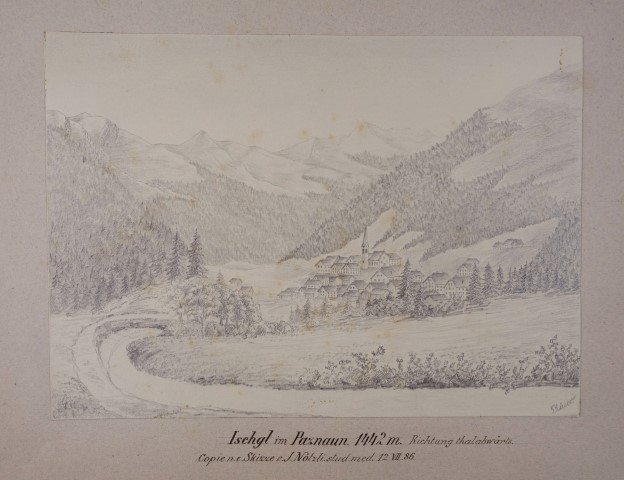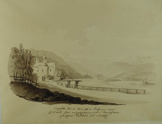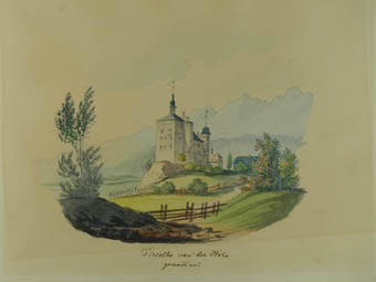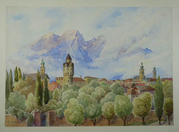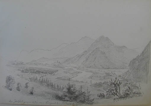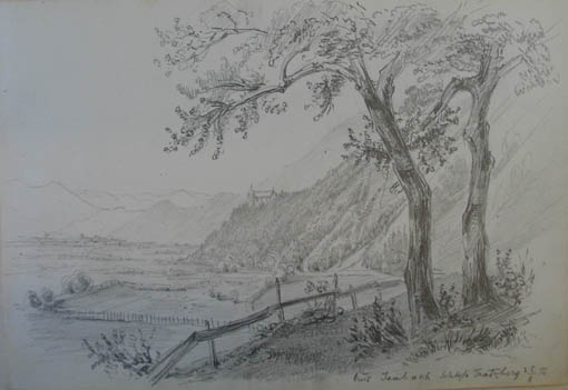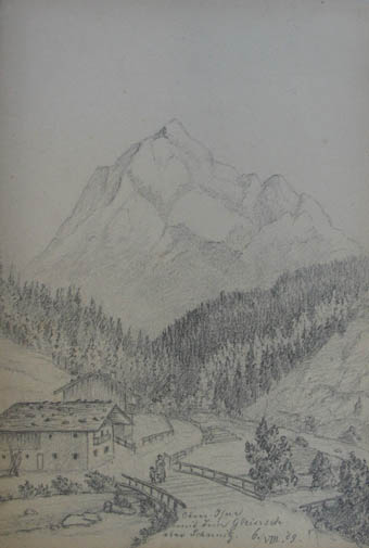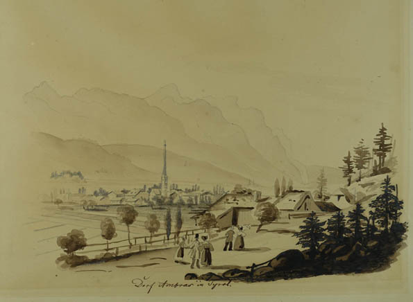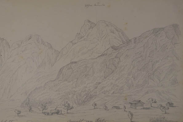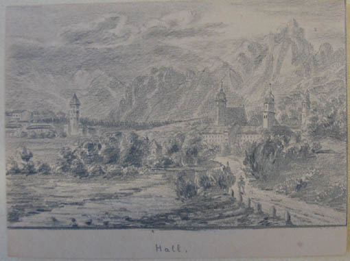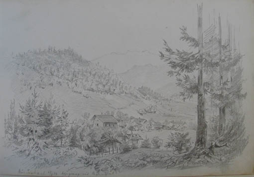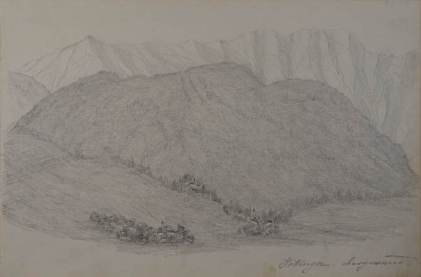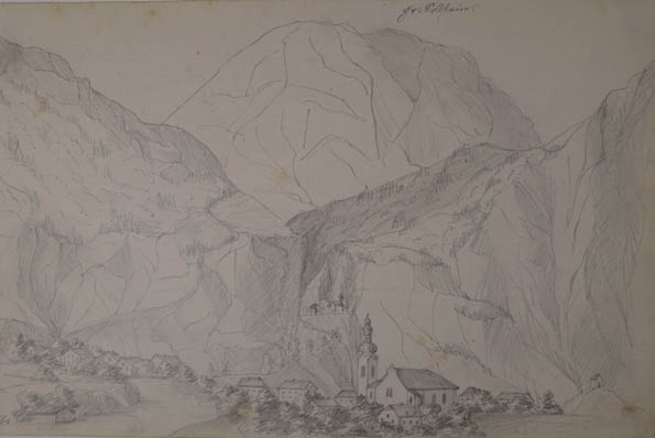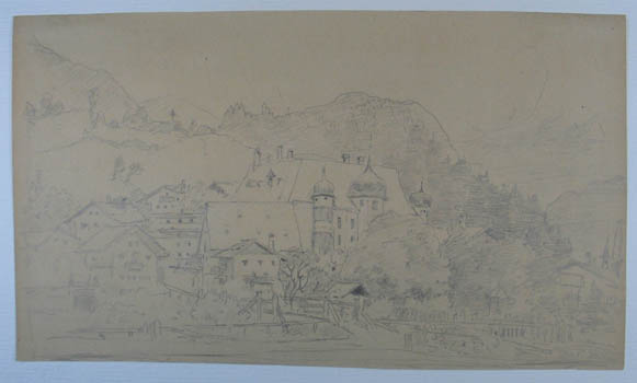 (Zirl mit Kalvarienberg). Anonyme Bleistiftzeichnung Monogr. G. um 1890, 15,5 x 23,5 cmOben rechts handschrftl. Bez. "Gr. Sollstain". - Verso handschriftl. bez. "Zirl mit Kalvarienberg".- (Tyrol, Tirol, Künstlergrafik) |