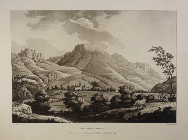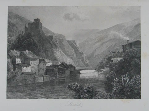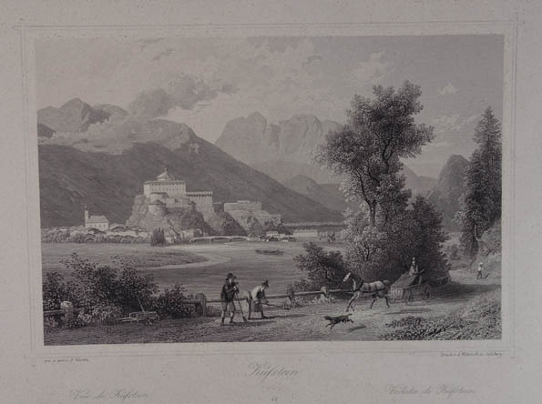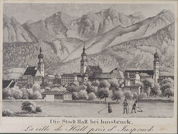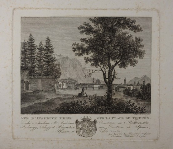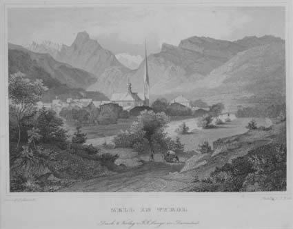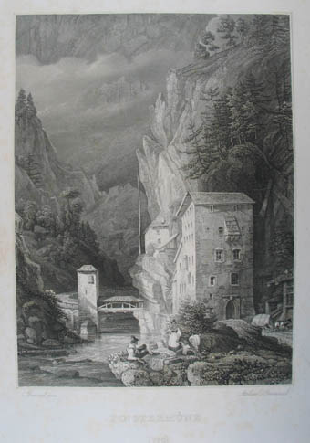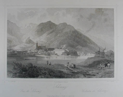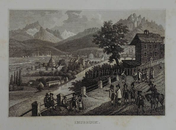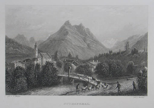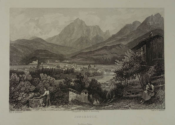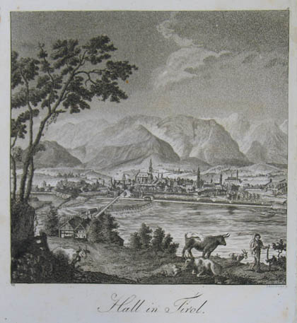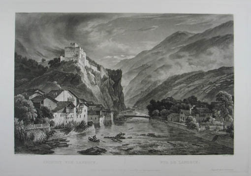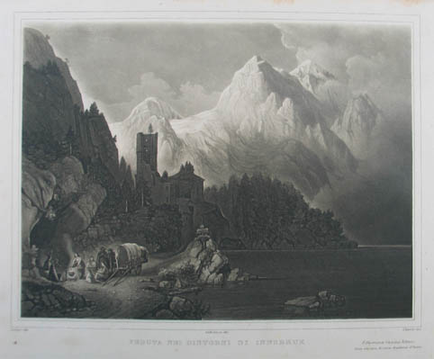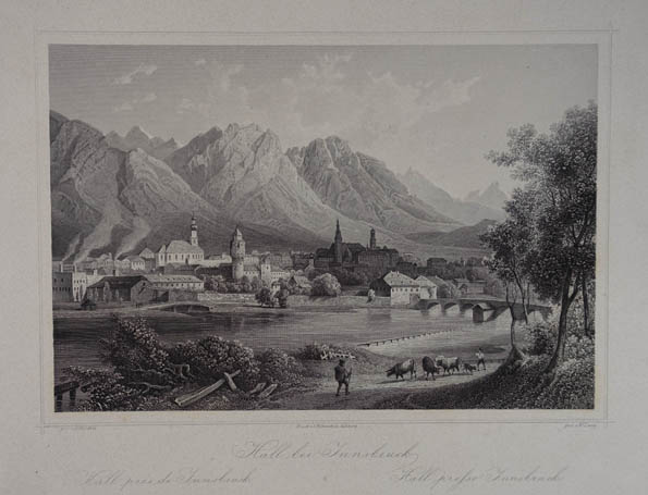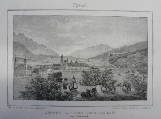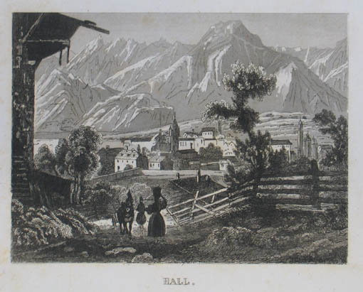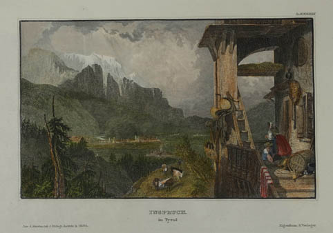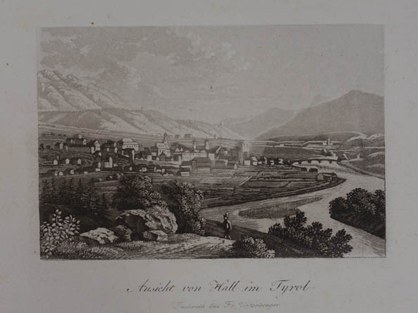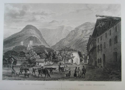 Zirl bey Innsbruck. Aquatinta v. Salathé n. Martens aus "Souvenirs du Tyrol" Paris, Tassari um 1840, 25,5 x 38,5 cmNebehay-W. 1.Erg. 393 / 7.- Sehr selten (Tyrol, Tirol) |