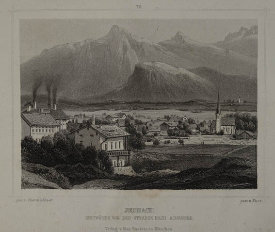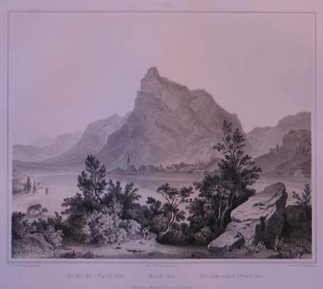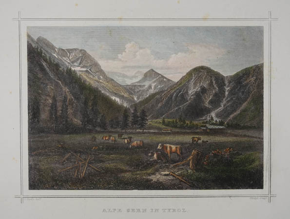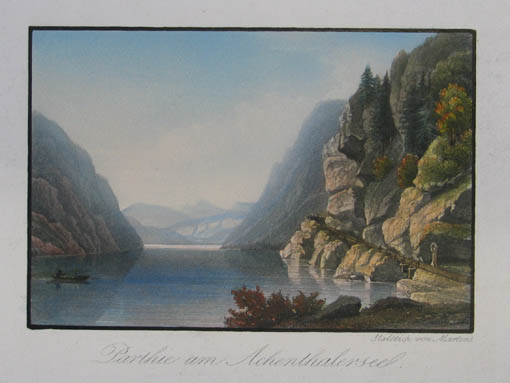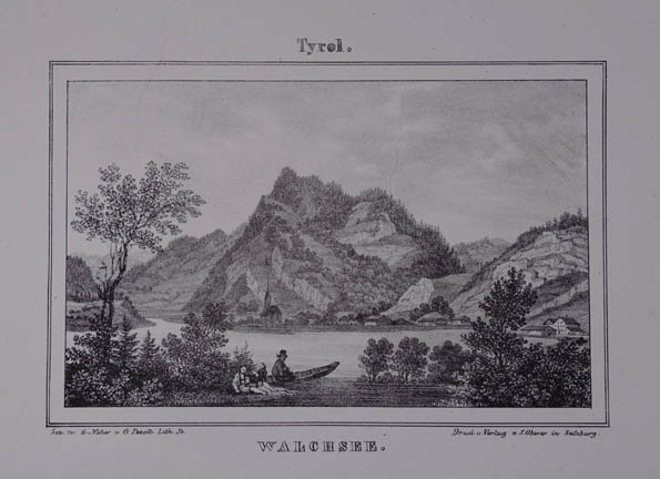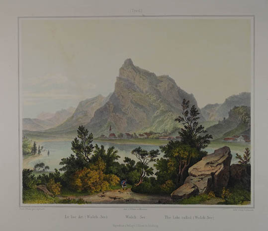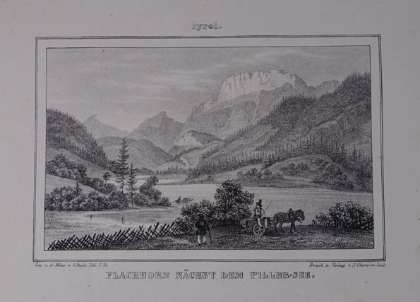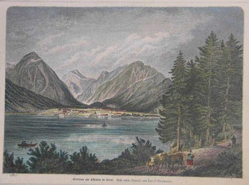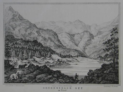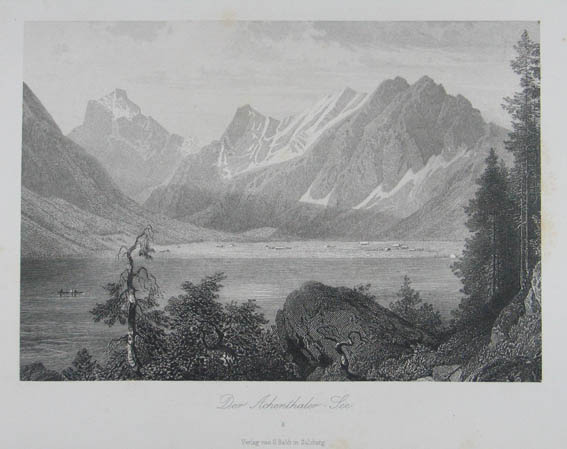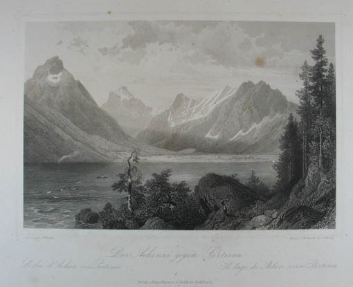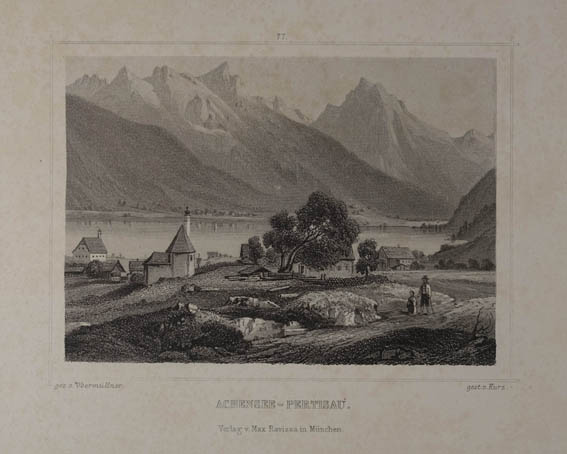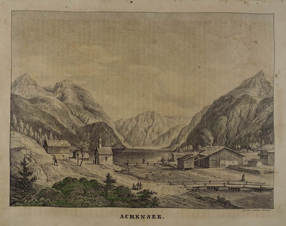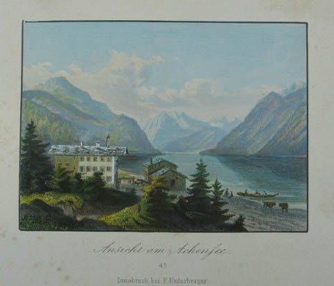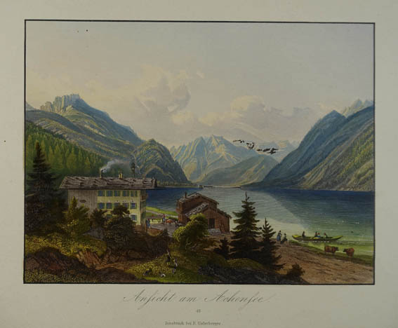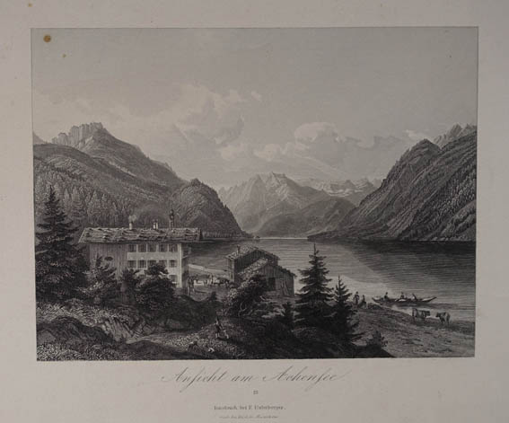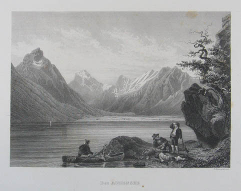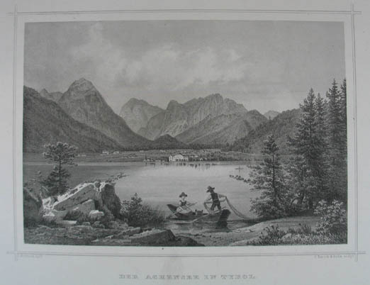 Der Achenthaler-See. Stahlstich aus J. F. Lentner "Album von Süd- und Nord-Tirol” Salzburg, Baldi 1853, 11 x 16 cmNebehay-W. 364 / 8.- Joseph Friedrich Lentner (* 18. Dezember 1814 in München; 23. April 1852 auf Schloss Lebenberg bei Meran) war ein bayerischer Schriftsteller, Maler, Illustrator und Ethnograph.- (Tyrol, Tirol) |