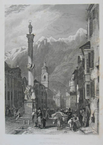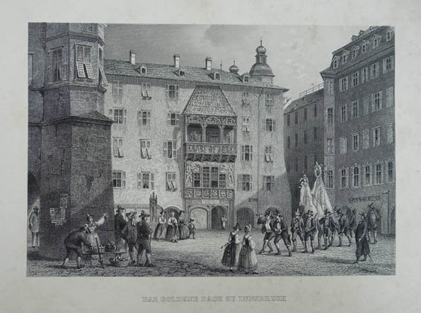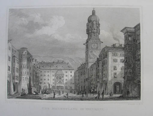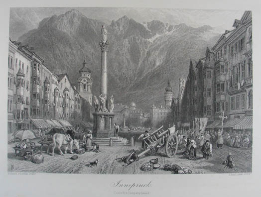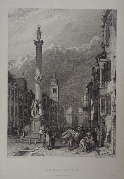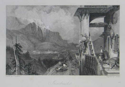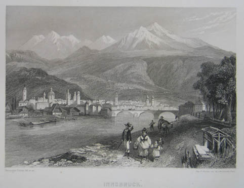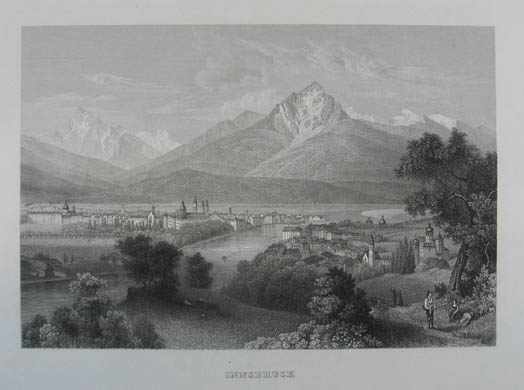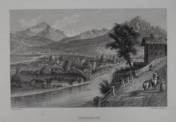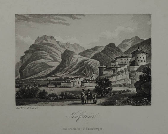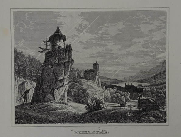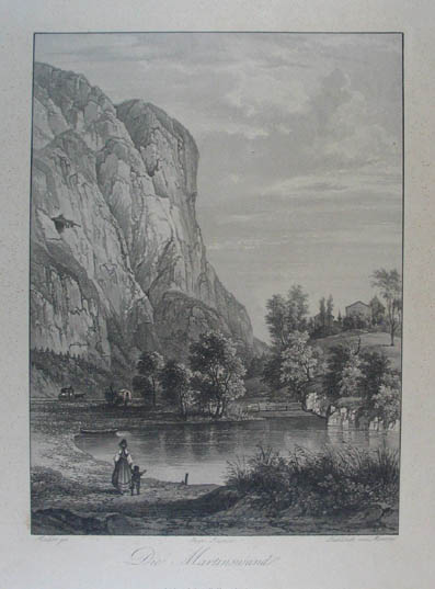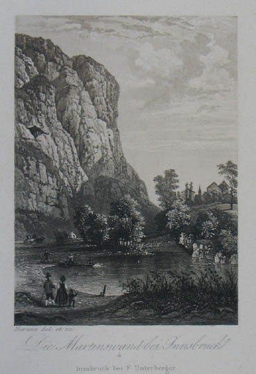 Die Martinswand bei Innsbruck. Stahlstich aus J. F. Lentner "Album von Süd- und Nord-Tirol” Salzburg, Baldi 1853, 11 x 16 cmNebehay-W. 364 / 5.- Joseph Friedrich Lentner (* 18. Dezember 1814 in München; 23. April 1852 auf Schloss Lebenberg bei Meran) war ein bayerischer Schriftsteller, Maler, Illustrator und Ethnograph.- (Tyrol, Tirol) |
