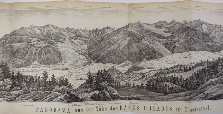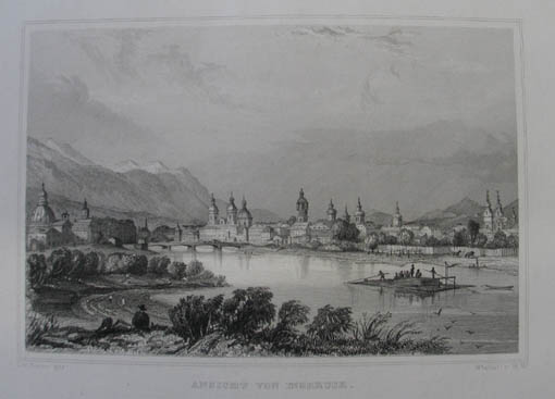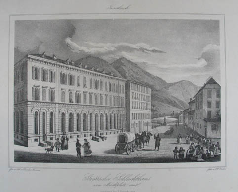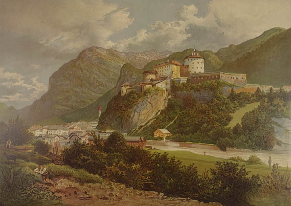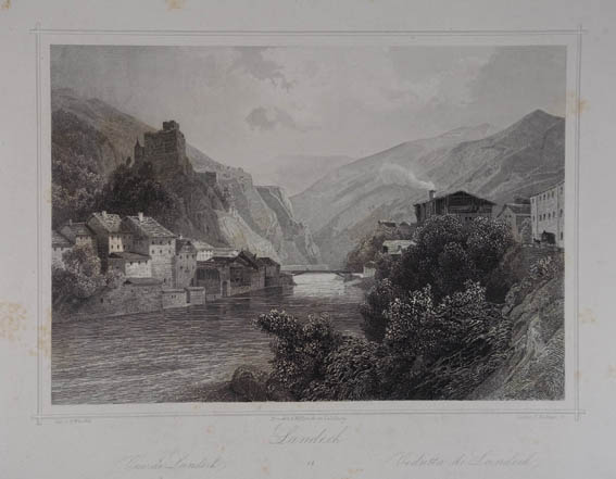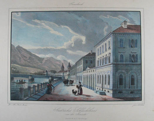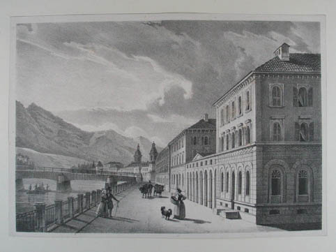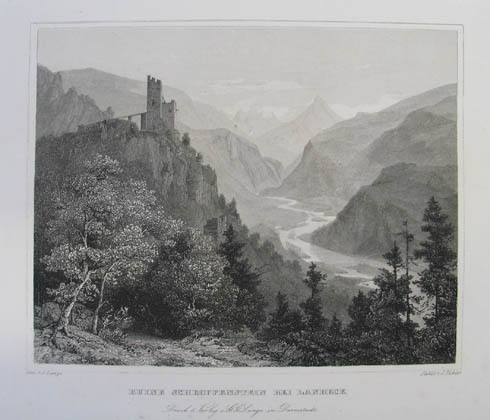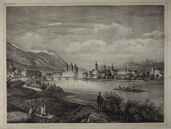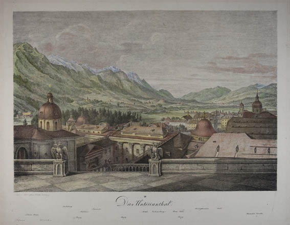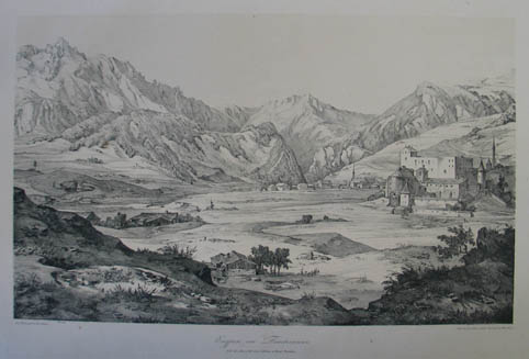 Nebehay-W. 55 / 23. - Selten! - Großformatige Gesamtansicht.- August Podesta (1813-1858) war Zeichner, Maler u. Lithograph. Er war ab 1835 in München tätig wo er sich der "landschaftlichen Darstellung" widmete. Deswegen unternahm er verschiedenen Reisen in das "bayerische Hochgebirge, nach Tirol und Vorarlberg, Salzburg und Meran und zeichnete bei dieser Gelegenheit eine Menge interessanter Ansichten" (Nagler XI, 434).- (Tyrol, Tirol) |