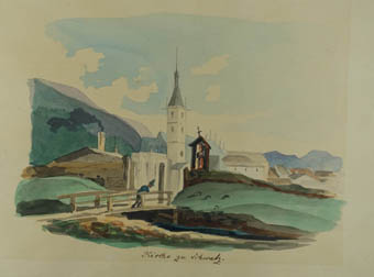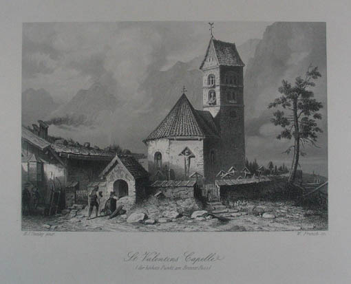 St. Valentins Capelle (der höchste Punkt am Brenner-Pass). Stahlstich v. French n. Stanley aus "Payne‘s Universum" Leipzig um 1855, 11,5 x 16,5 cmNicht in Nebehay-W. (Tyrol, Tirol) |