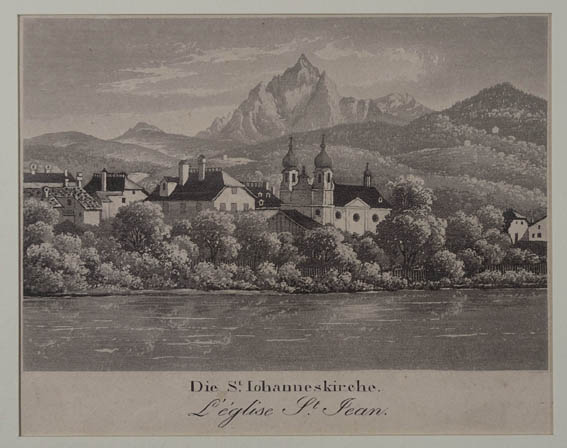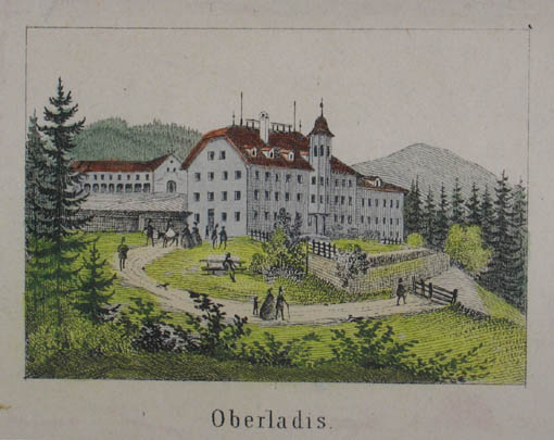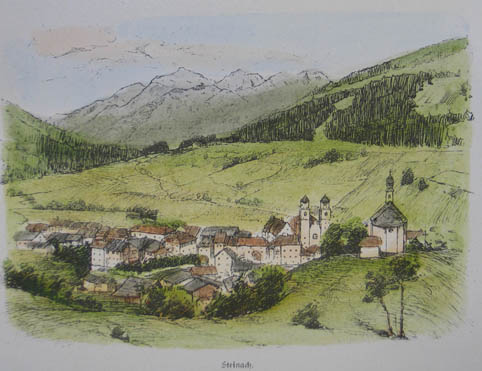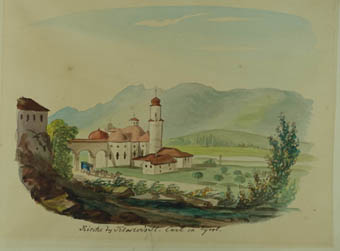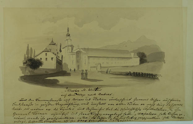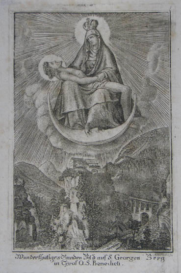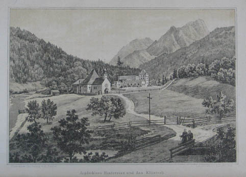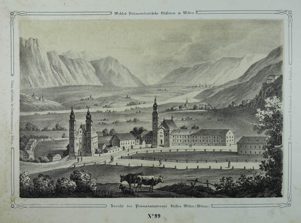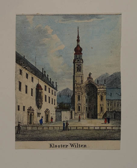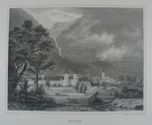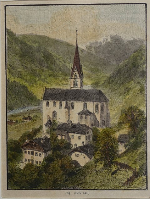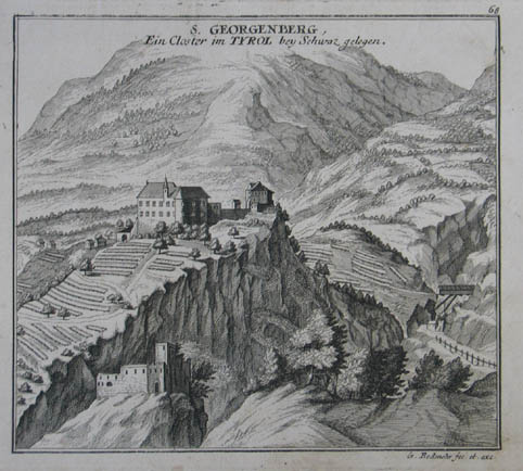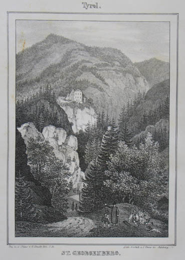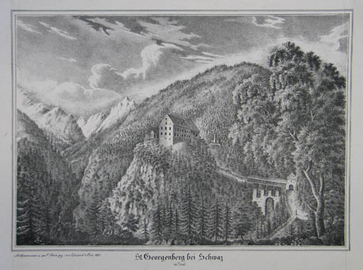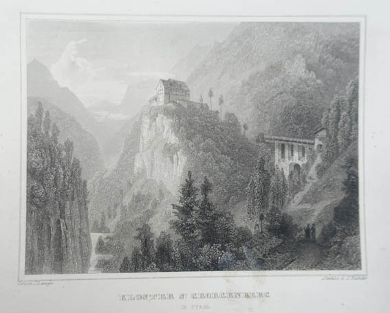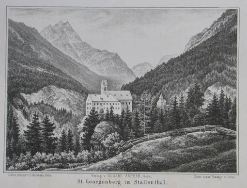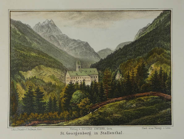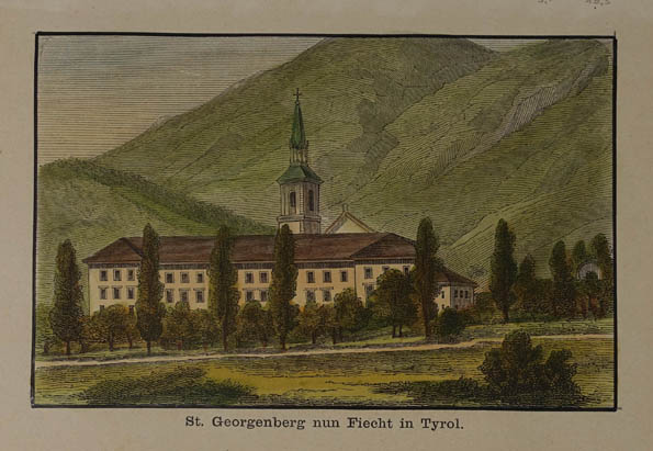 St. Georgenberg nun Fiecht in Tyrol. Kolorierter Holzstich aus S. Brunner "Benediktinerbuch". Würzburg, L. Woerl 1880, 8 x 12,5 cm(Tyrol, Tirol) |