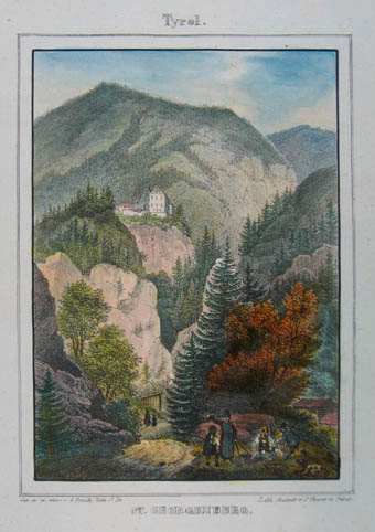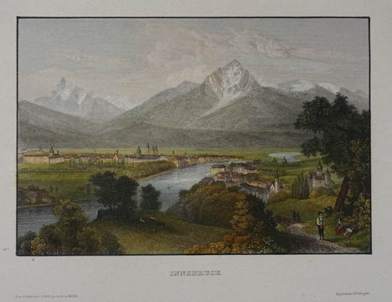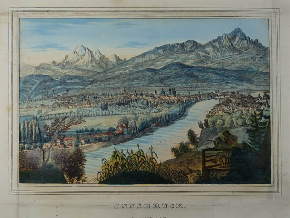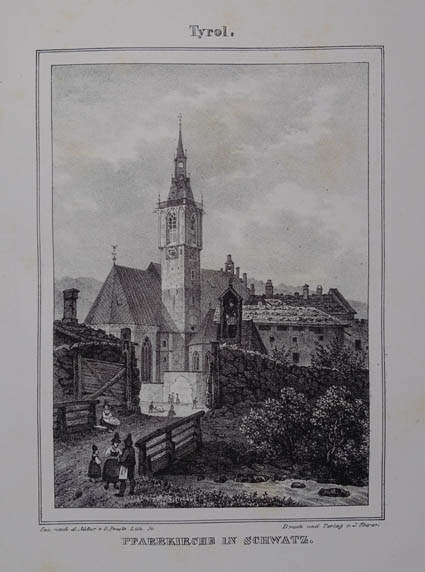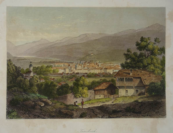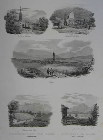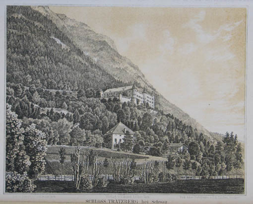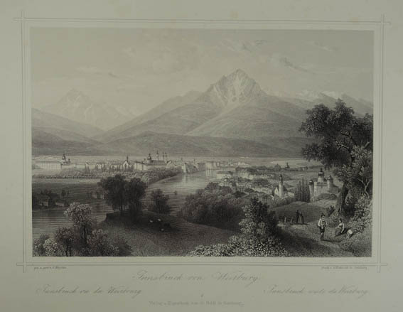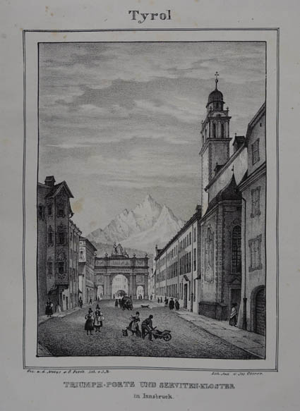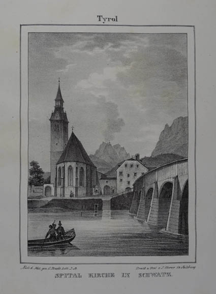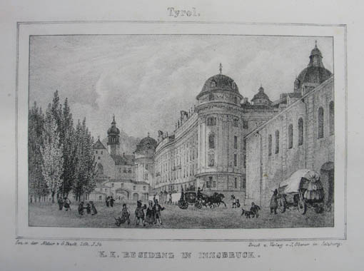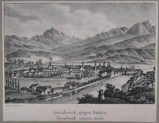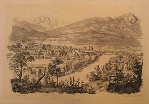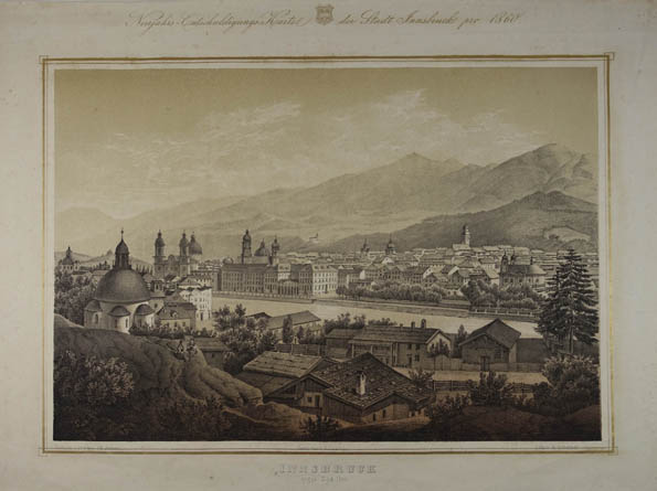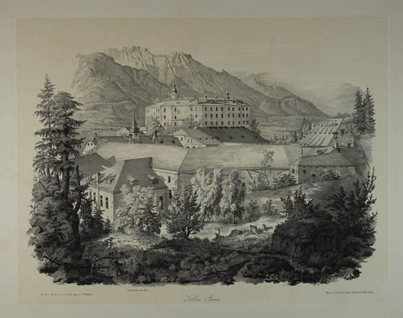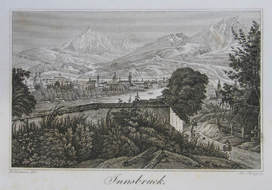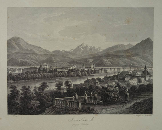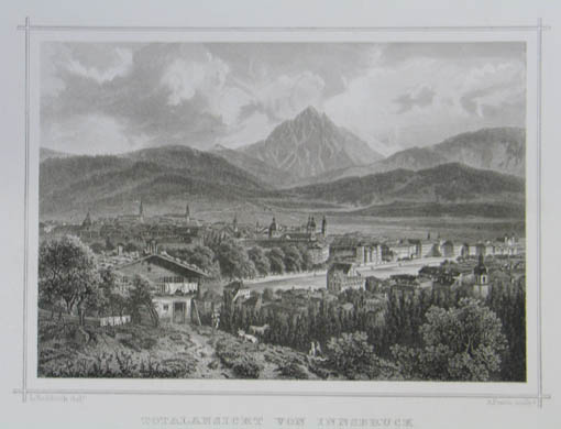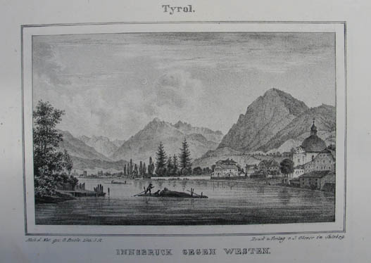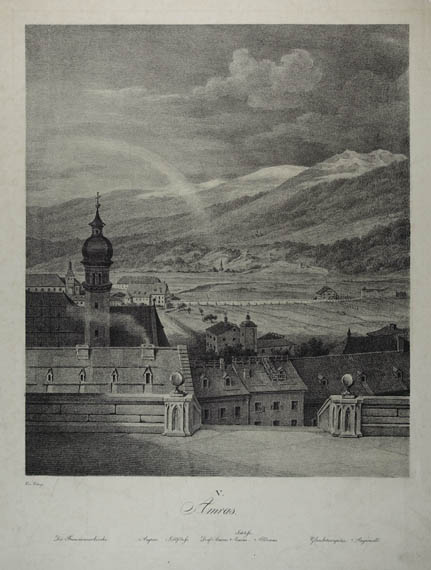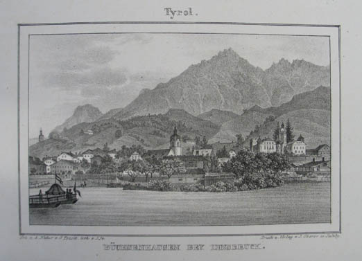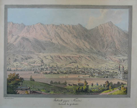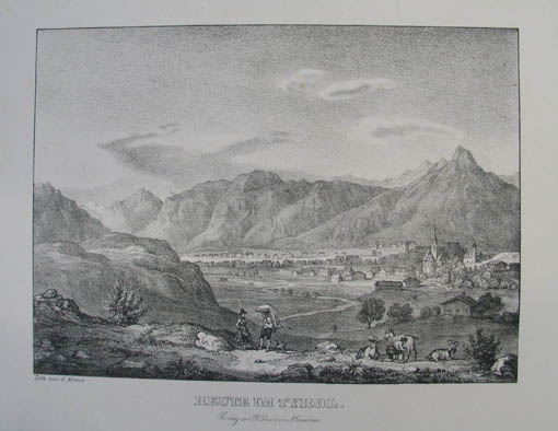 Nebehay-W. 55 / 5. - Selten! - Großformatige Gesamtansicht.- August Podesta (1813-1858) war Zeichner, Maler u. Lithograph. Er war ab 1835 in München tätig wo er sich der "landschaftlichen Darstellung" widmete. Deswegen unternahm er verschiedenen Reisen in das "bayerische Hochgebirge, nach Tirol und Vorarlberg, Salzburg und Meran und zeichnete bei dieser Gelegenheit eine Menge interessanter Ansichten" (Nagler XI, 434).- (Tyrol, Tirol) |