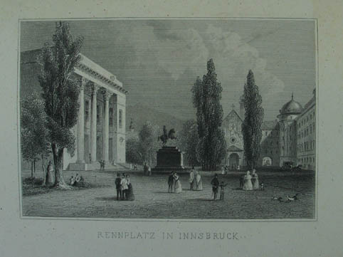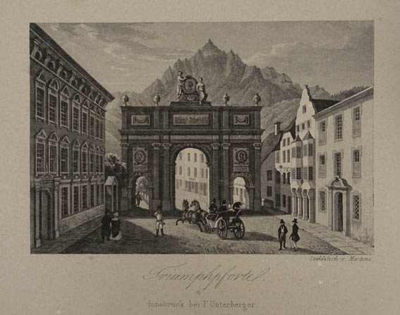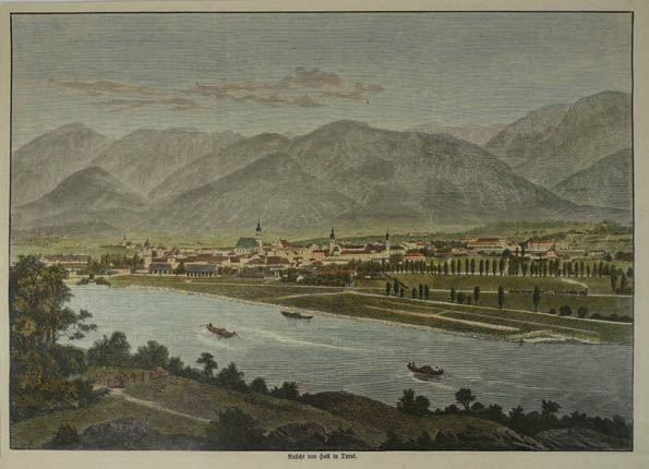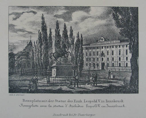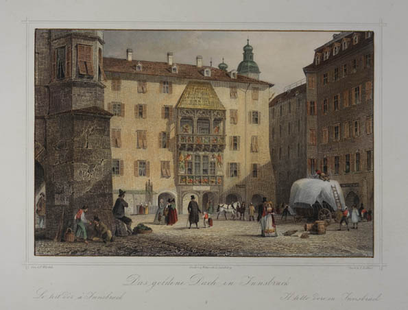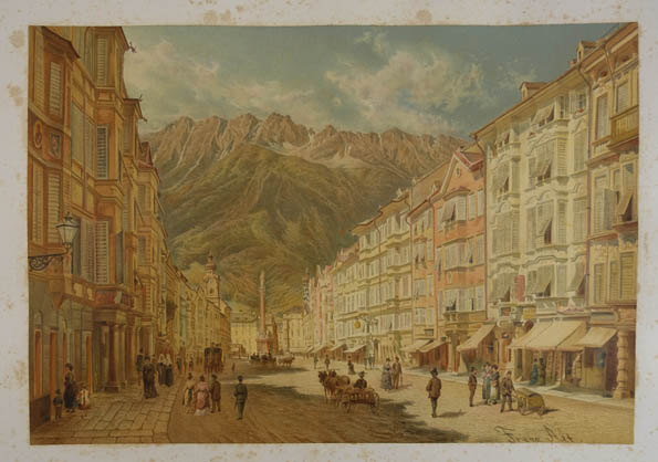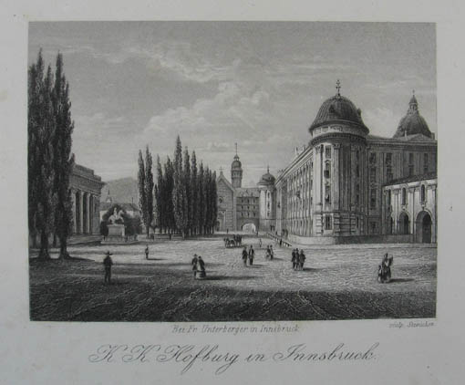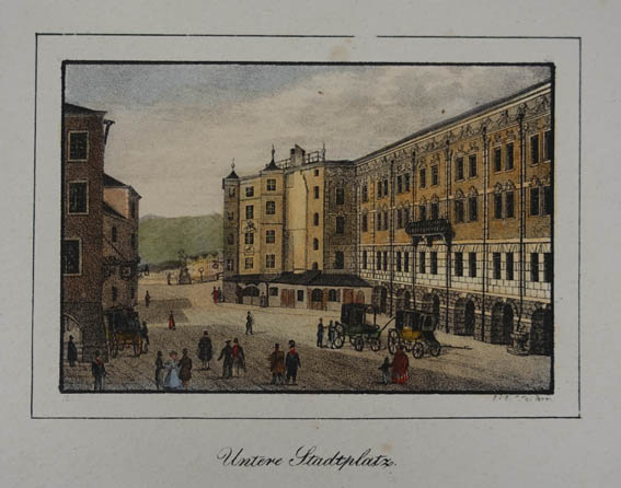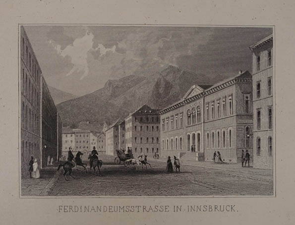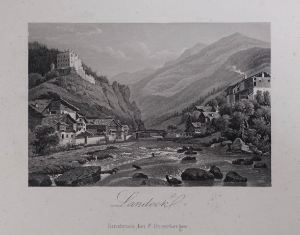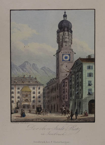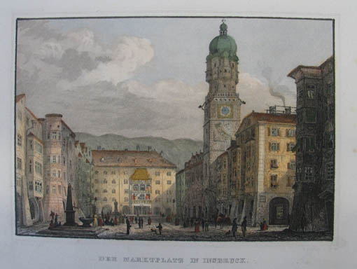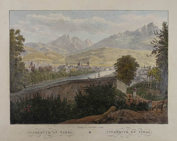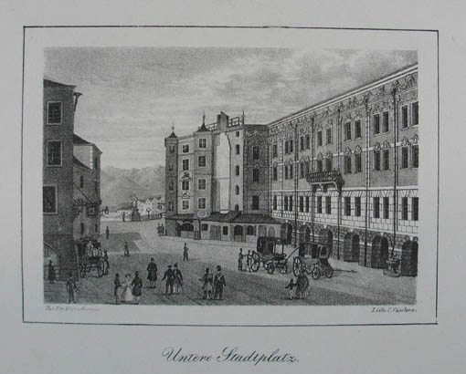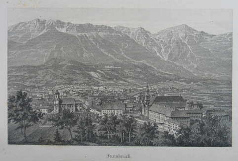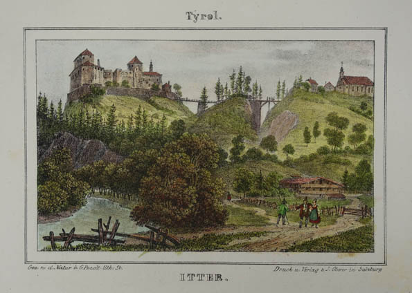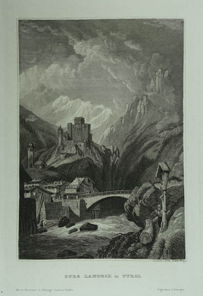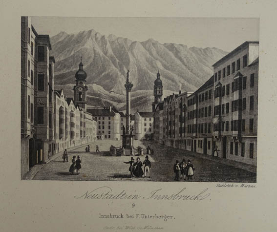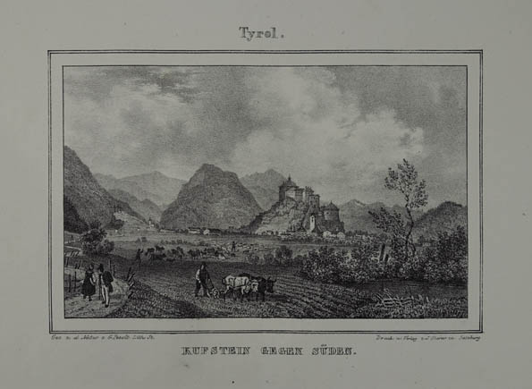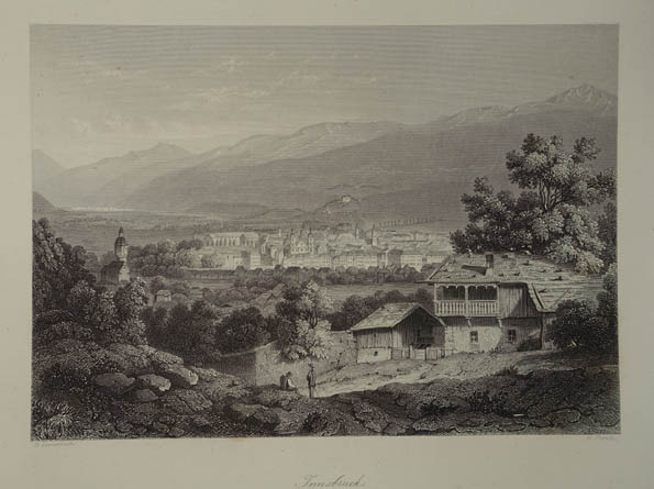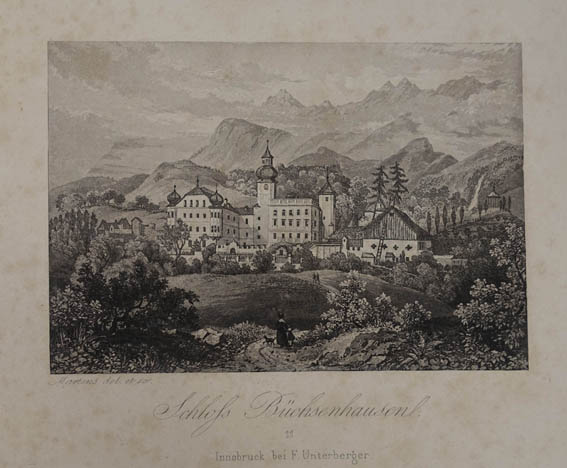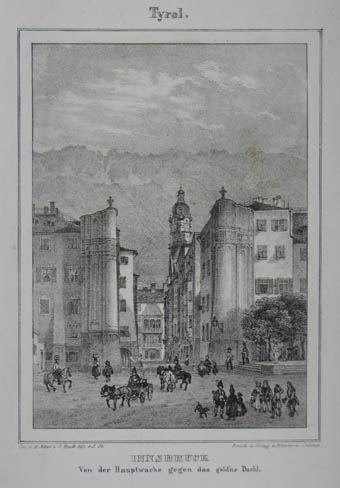 Nebehay-W. 55 / 5. - Selten! - Großformatige Gesamtansicht.- August Podesta (1813-1858) war Zeichner, Maler u. Lithograph. Er war ab 1835 in München tätig wo er sich der "landschaftlichen Darstellung" widmete. Deswegen unternahm er verschiedenen Reisen in das "bayerische Hochgebirge, nach Tirol und Vorarlberg, Salzburg und Meran und zeichnete bei dieser Gelegenheit eine Menge interessanter Ansichten" (Nagler XI, 434).- (Tyrol, Tirol) |