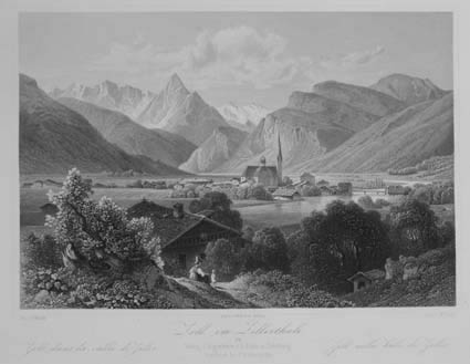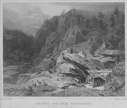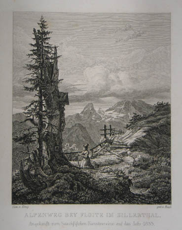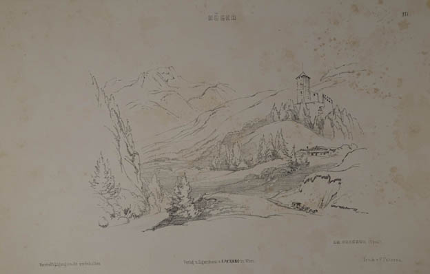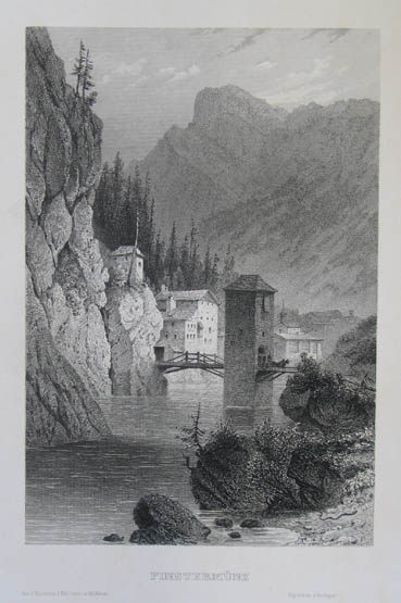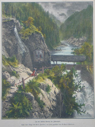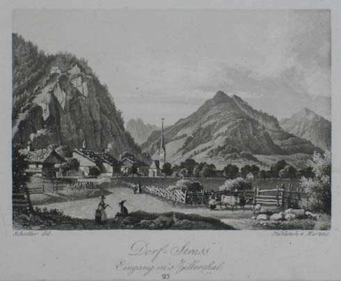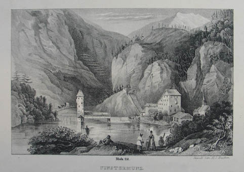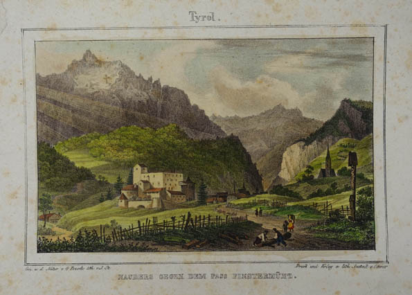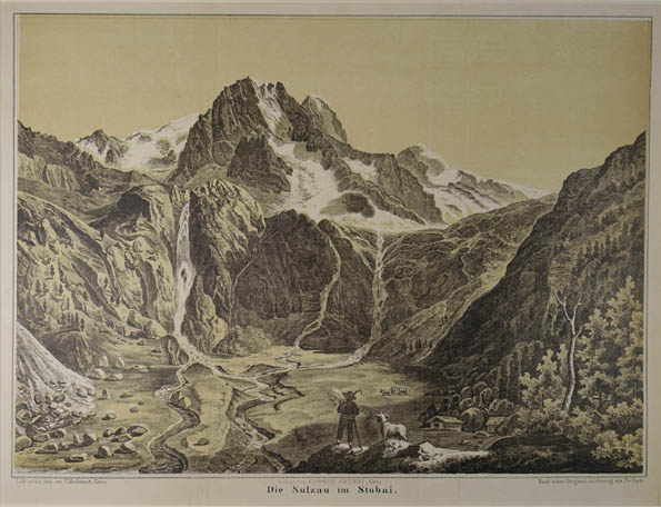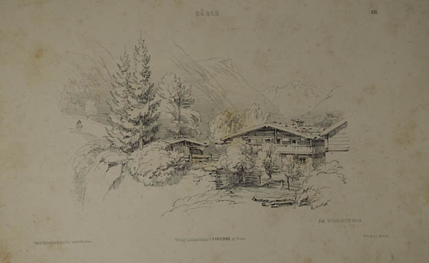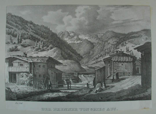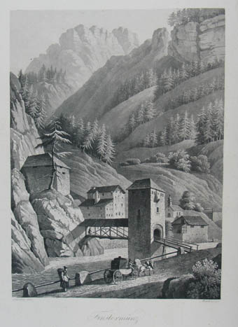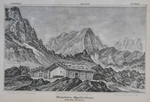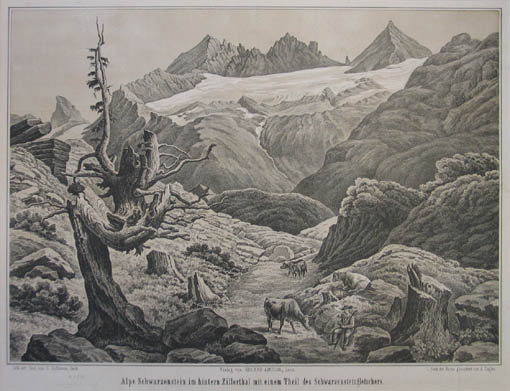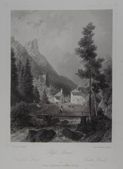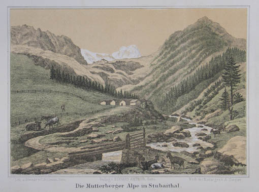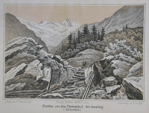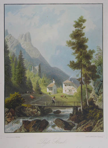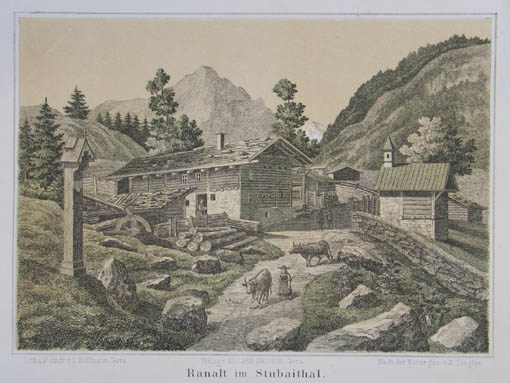 Nebehay-W. 615 / 21.- August Podesta (1813-1858) war Zeichner, Maler u. Lithograph. Er war ab 1835 in München tätig wo er sich der "landschaftlichen Darstellung" widmete. Deswegen unternahm er verschiedenen Reisen in das "bayerische Hochgebirge, nach Tirol und Vorarlberg, Salzburg und Meran und zeichnete bei dieser Gelegenheit eine Menge interessanter Ansichten" (Nagler XI, 434).- (Zillertal, Tyrol, Tirol) |