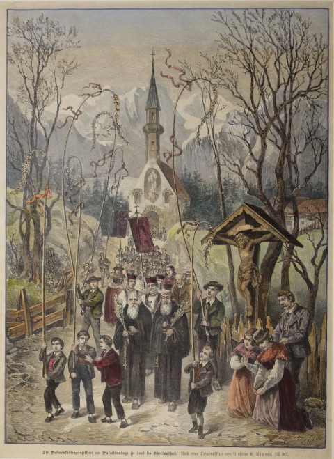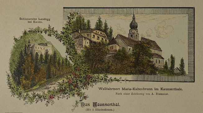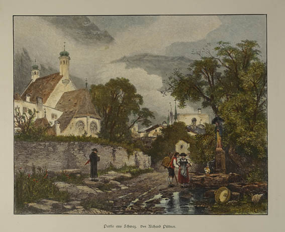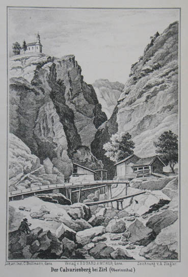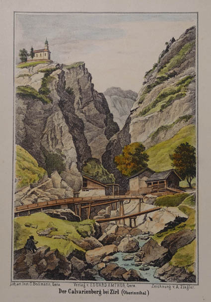 Der Calvarienberg bei Zirl (Oberinnthal). Kolorierte Lithographie v. C. Bollmann aus Amthor "Der Alpenfreund” Gera 1877, 17 x 11,5 cmNebehay-W. 880 / 62 (Tyrol, Tirol) |