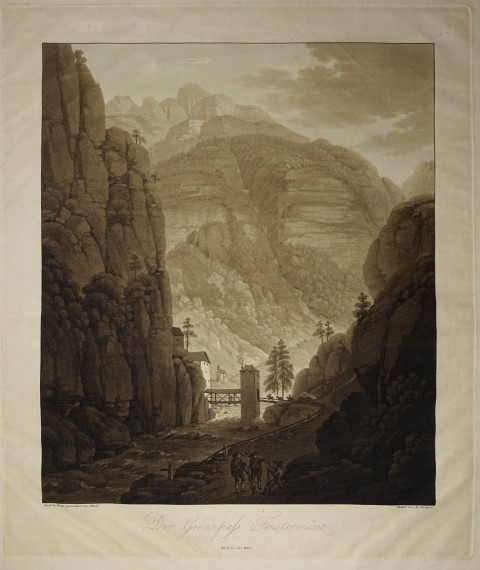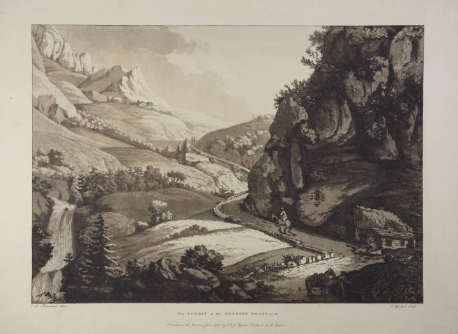 Nebehay-W. 83 / 2 - Egg 184 u. Tafel 120.- Großformatige Aquatinta-Ansicht.- Der Aufstieg zum Brennerpaß, links die Eisack.- Der Holländer Cornelis Apostool (1762 Amsterdam 1844) ging 1786 nach England, wo er als Kupferstecher von Aquatinta arbeitete.- (Tyrol, Tirol) |