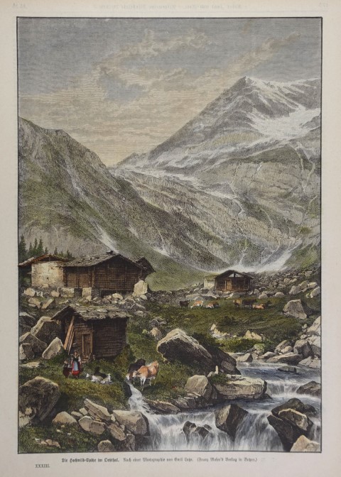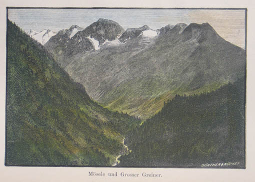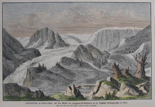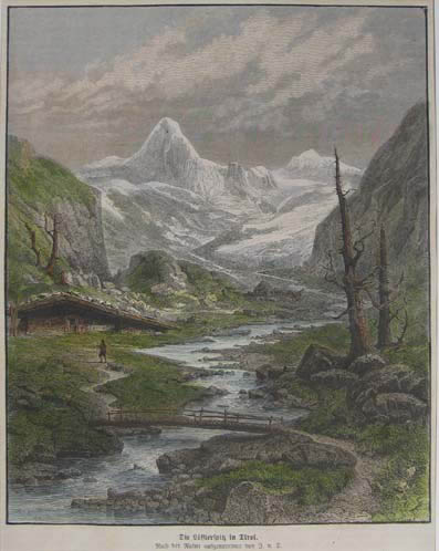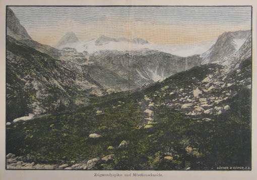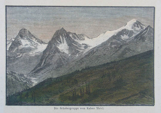 Die Schobergruppe vom Kalser Thörl. Kolorierter Holzstich 1886, 8 x 12 cm(Tyrol, Tirol) |