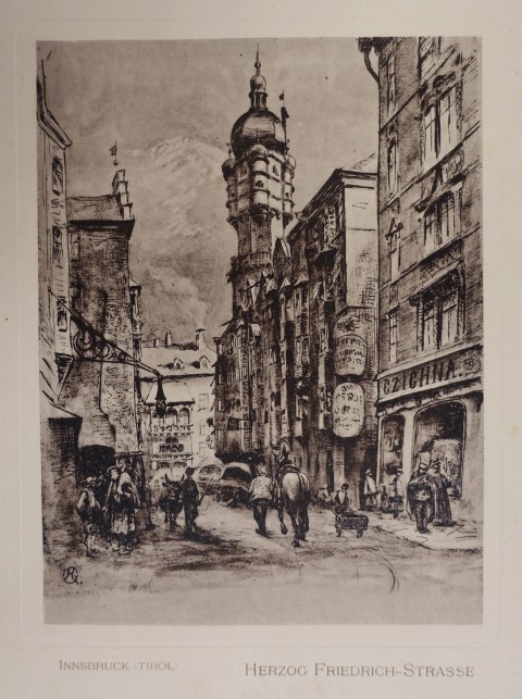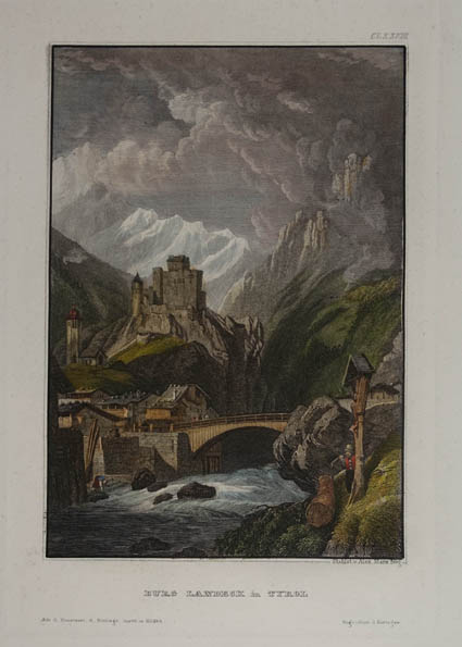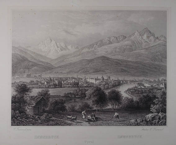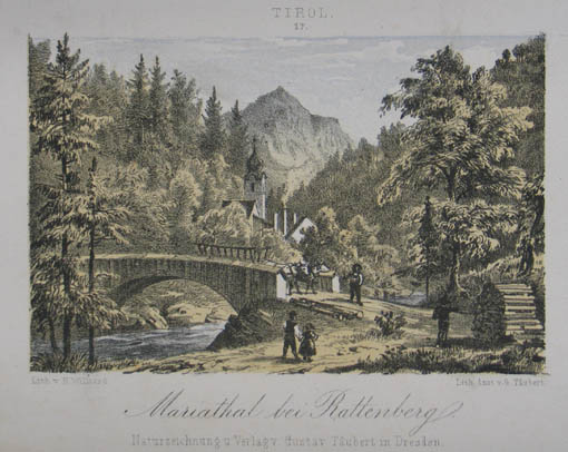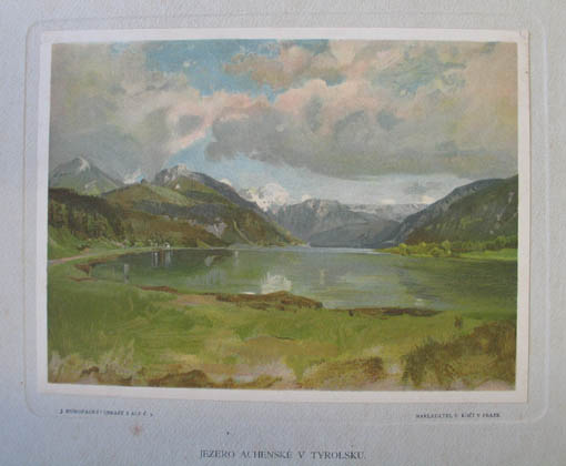 Nebehay-W. 454 / 5.- Johann Novopacky (* 15.11.1821 Nechanitz/ Nechanice (Böhmen), 3.7.1908 Wien) studierte an der Wiener Akademie der bildenden Künste bei Thomas Ender und Franz Steinfeld. Er war Zeichenlehrer am kaiserlichen Hof, daneben arbeitete er auch als Radierer und Lithograph. Der Künstler unternahm mehrere Reisen nach Tirol, Italien, Istrien, Dalmatien und Ungarn. Viele seiner Landschaftsbilder sind auf diesen Reisen entstanden.- Mit tschechischer Bildunterschrift (Tyrol, Tirol) |