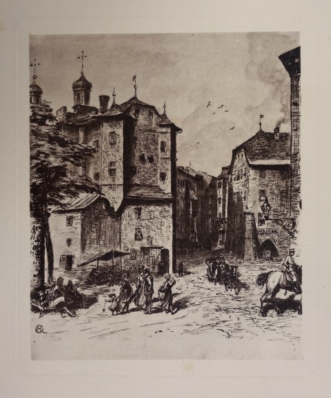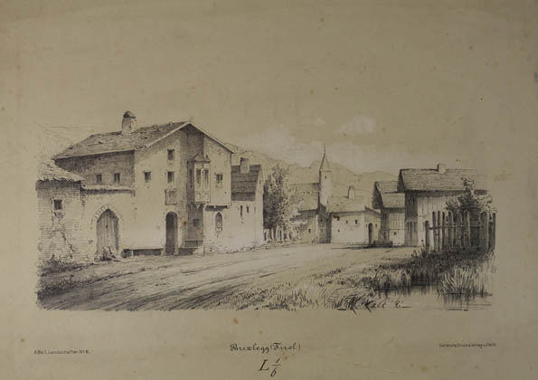 Brixlegg (Tirol). Lithographie von Anton Doll aus "Landschaften" No.6. Karlsruhe Verlag J. Veith um 1870, 18 x 32 cmNicht in Nebehay-W.- Sehr seltene Detailansicht.- Der Landschaftsmaler Anton Doll (* 3. März 1826 in München; 2. Mai 1887 ebenda) war ein Vertreter der Münchner Schule. (Tyrol, Tirol) |