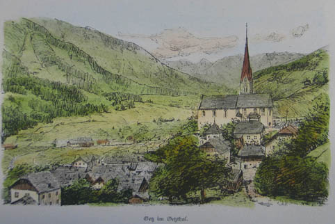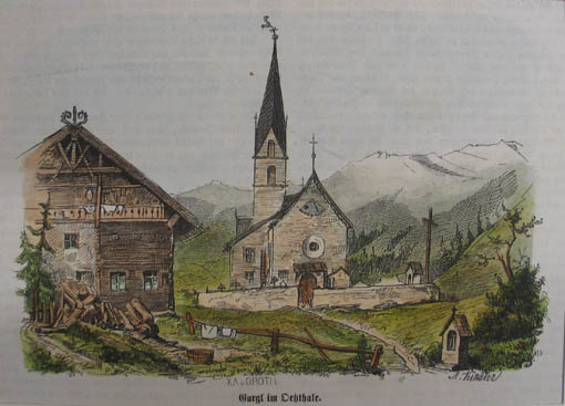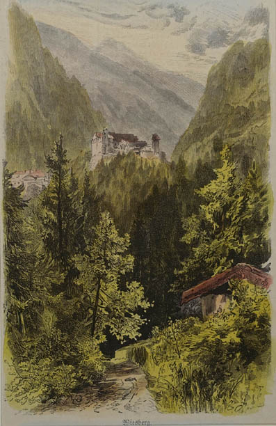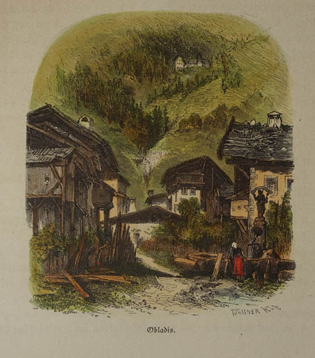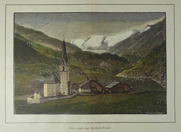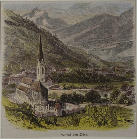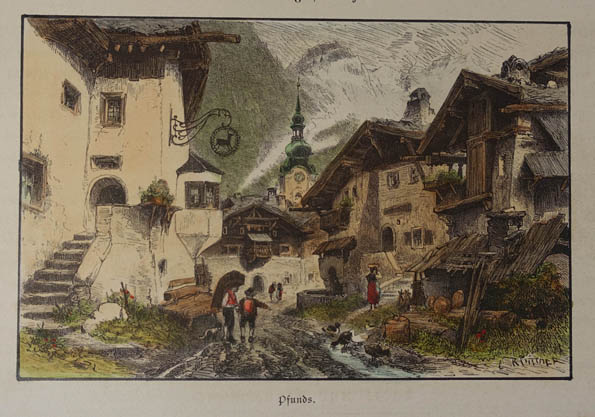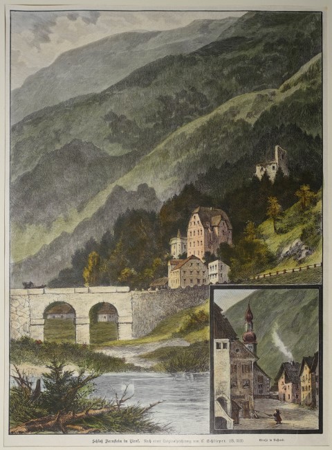 Wiesberg bei Landeck, Wiesberg. Kolorierter Holzstich um 1880, 16 x 10,5 cm(Tyrol, Tirol) |