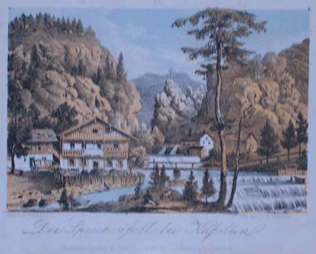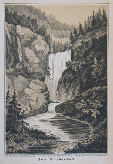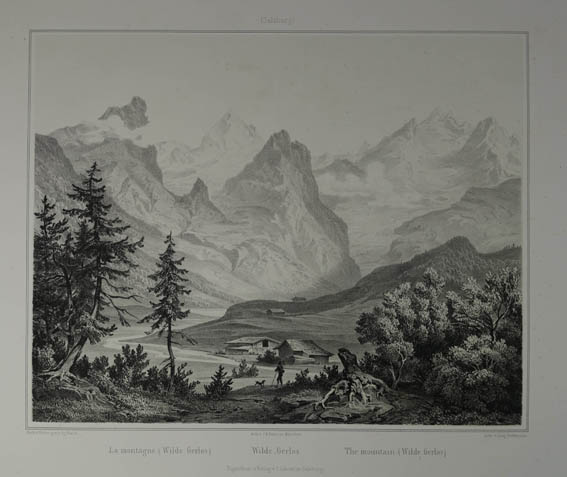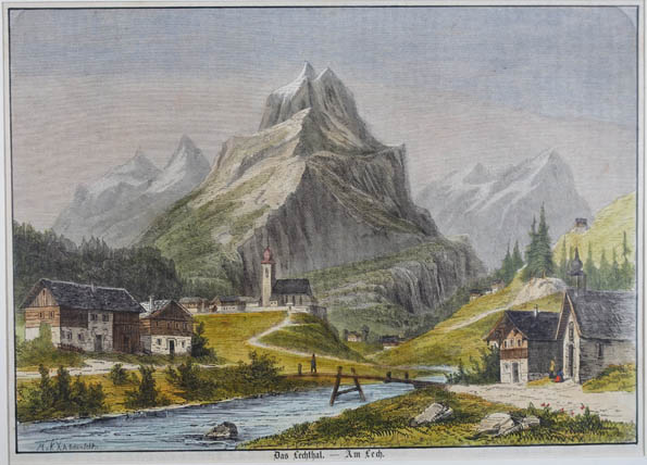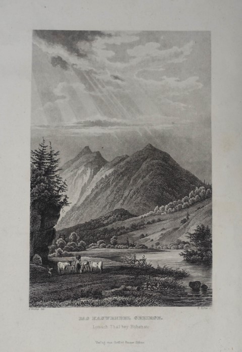 Im Zillerthale. Lithographie aus "Landschafts-Schule" von Joseph Höger (1801-1877). Wien, F. Paterno um 1850, 17 x 26 cm (Blattgr.)Nr. 138.- Nicht in Nebehay-W., selten.- Entworfen u. lithografiert von Joseph Höger (1801-1877). Er war österreichischer Landschaftsmaler, Aquarellist, Radierer und Lithograf. 1843 wurde er Professor an der Wiener Akademie, an der er auch studiert hatte. Bekannt ist er wegen seiner stimmungsvollen und zugleich auch dramatischen Wald- und Gebirgslandschaften, aber auch durch seine feinen und detailgetreuen Aquarelle. Deshalb wurde ihm im Freundeskreis scherzhaft der Spitzname "Bäume-Raffael" verliehen. Viele seiner Blätter dienten aus diesem Grund als Vorlagen für Lithographien. - Leicht braunfleckig. (Zillertal, Tyrol, Tirol) |