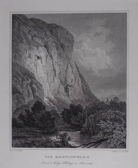 Die Martinswand. Stahlstich v. L. Rohbock n. J. Lange, Darmstadt 1851, 13,5 x 11,5 cmNebehay-W. 353, 9.Bd. 44.- Ludwig Rohbock (* 30. März 1824 im Sulzbach bei Nürnberg; 12. Januar 1893 in München) war Landschafts- und Architekturzeichner und Stahlstecher. (Tyrol, Tirol) |