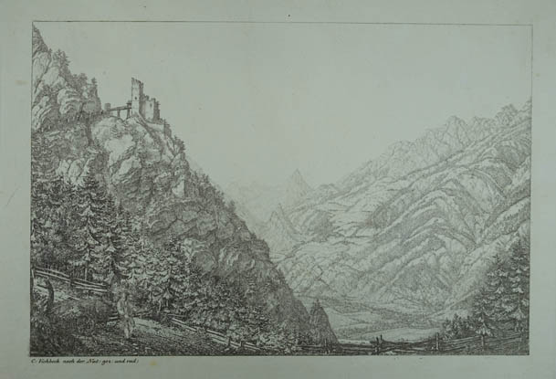 Nebehay-W. 502, 1.Abt. 89.- Breitrandiges Blatt..- Leopold Rottmann (* 2. Oktober 1812 in Heidelberg; 26. März 1881 in München) war Landschaftsmaler u. Lithograph. Er war der Zeichenlehrer von Kronprinz Ludwig, dem künftigen König Ludwig II. von Bayern. Die Motive seiner frühen Bilder bis 1850 entstammen fast alle der Salzburger und Berchtesgadener Gegend.- (Alpinismus, Tyrol, Tirol) |