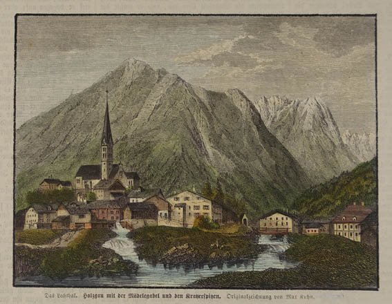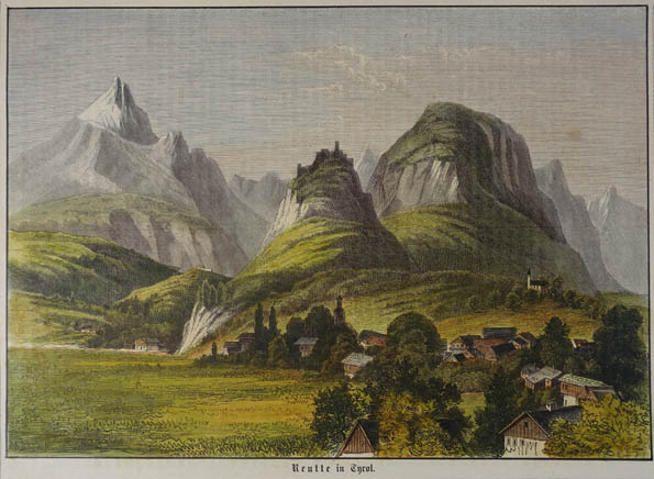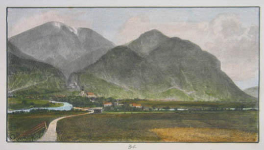 Zirl. Kolorierter Holzstich aus Hörmann / Schmid / Steub / Seyffertitz / Zingerle "Wanderungen durch Tirol und Vorarlberg". Kröner Stuttgart um 1880, 8 x 15 cmNebehay-W. 758.- (Tyrol, Tirol) |