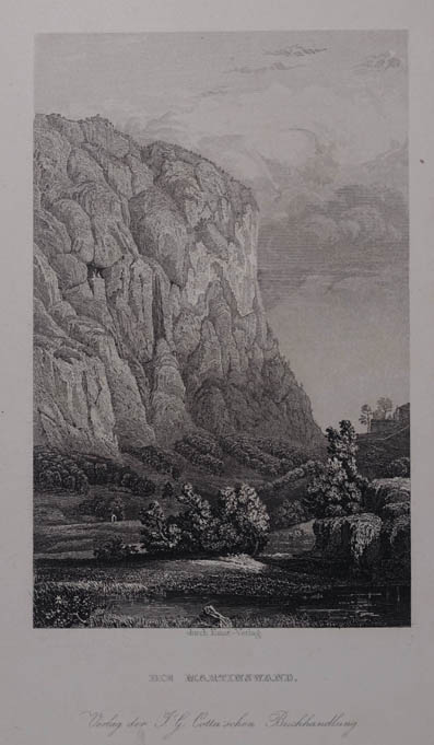 Die Martinswand. Stahlstich aus A. Lewald "Tirol vom Gletscher zum Orteles und vom Gardasee zum Bodensee” München 1838, 13,5 x 8,5 cmNebehay-W. 986 / 1.- (Tyrol, Tirol) |