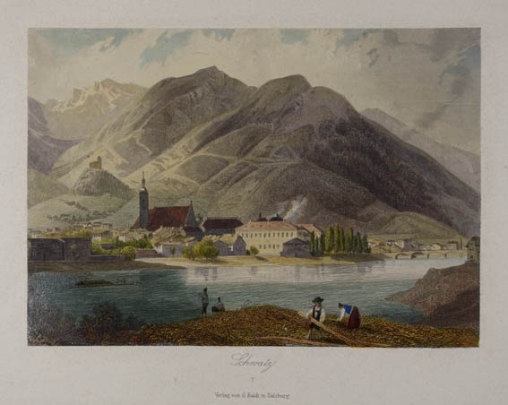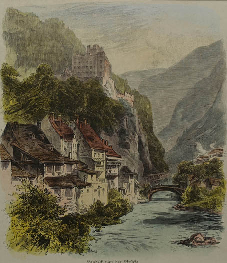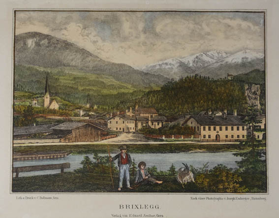 Brixlegg. Kolorierte Lithographie v. Bollmann aus Amthor "Der Alpenfreund" Gera 1870-79, 12,5 x 17,5 cmNebehay-W. 880 / 6.- (Tyrol, Tirol) |