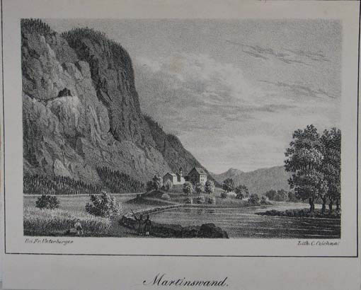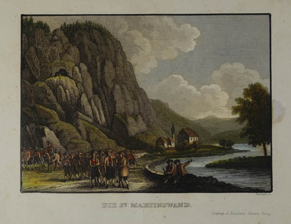 Die St. Martinswand. Kolorierter Stahlstich aus Becker "Andreas Hofer und der Freiheitskampf in Tyrol 1809” Leipzig 1841, 8 x 11,5 cmNebehay-W. 85 / 4 (Tyrol, Tirol) |