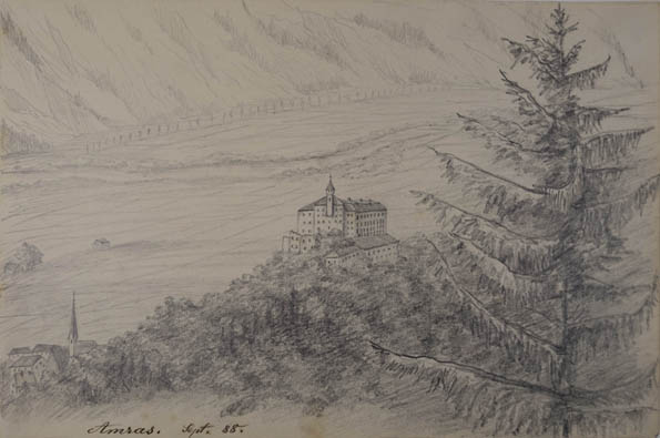 Aussicht von Zirl / Sept. 88. Anonyme Bleistiftzeichnung, dat. Sept. 1888, 15,5 x 23,5 cmUnten handschriftlich bez. "Ansicht von Zirl".- (Tyrol, Tirol, Künstlergrafik) |