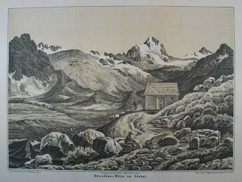 Nebehay-W. 195 / 117.- Die Berliner Hütte wurde ursprünglich 1879 von der Sektion Berlin des Deutschen und Österreichischen Alpenvereins (DuOeAV) erbaut.- August Gerasch (* 1. September 1822 Wien; 23. März 1908 ebenda) war Landschafts- und Genremaler.- (Zillertal, Zemmgrund, Tyrol, Tirol) |